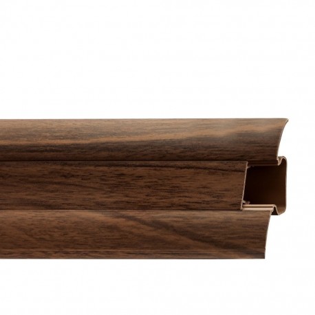 Plinta este realizata din PVC rezistent cu finisaj nueces jupiter si lungimea de 2,5 m. Datorita sistemului de fixare este usor de montat si demontat pentru renovari.
