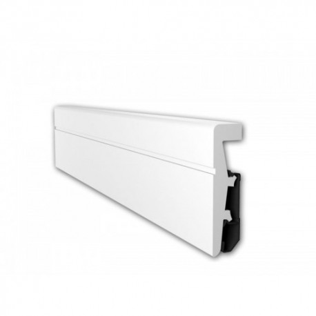 Plintă albă din videlit, material dur rezistent la lovituri și zgârieturi, 100% waterproof, ușor de montat și demontat pentru renovare. Se poate vopsi.