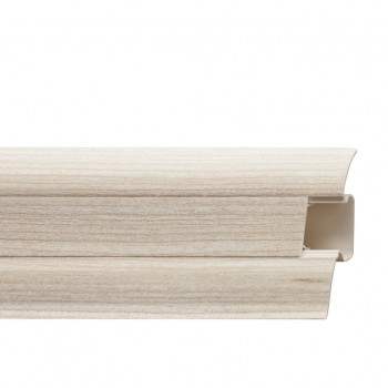 Plinta este realizata din PVC rezistent cu finisaj frasin si lungimea de 2,5 m. Datorita sistemului de fixare este usor de montat si demontat pentru renovari.